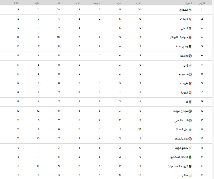 إليكم جدول الدوري المصري بعد تعادل الزمالك مع غزل المحله،وفوز الاهلي علي كهرباء اسماعيلية.