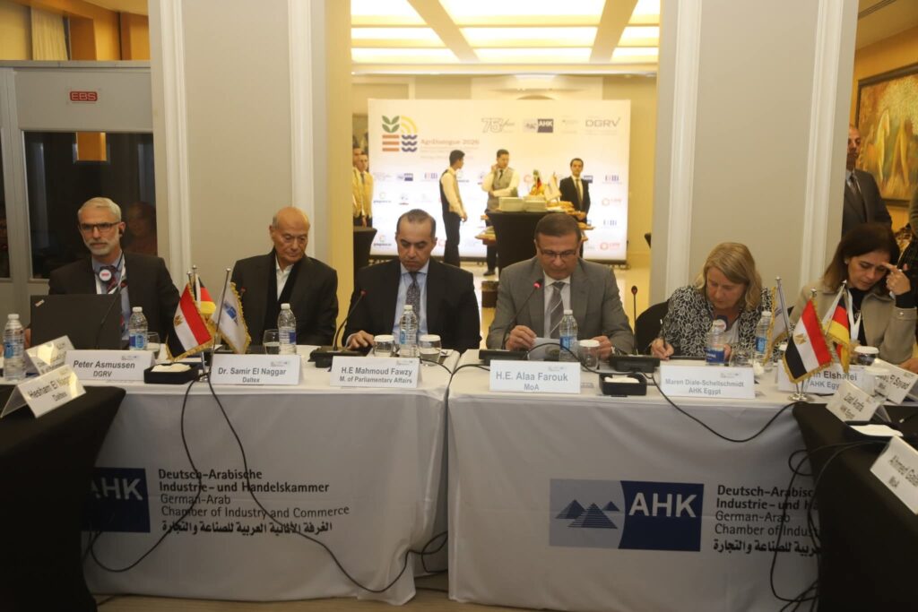 شهد علاء فاروق وزير الزراعة واستصلاح الأراضي، والمستشار محمود فوزي، وزير الشؤون النيابية والقانونية والتواصل السياسي، انطلاق فعاليات الجلسة النقاشية رفيعة المستوى تحت عنوان “الحوار الزراعي 2026: تعزيز التعاونيات الزراعية في مصر وألمانيا”، والتي نظمتها الغرفة الألمانية العربية للصناعة والتجارة بالتعاون مع وزارة الزراعة واستصلاح الأراضي.