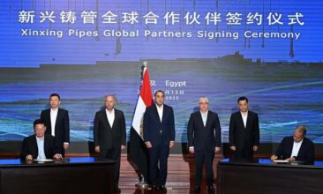 على هامش افتتاح مصنع الشركة لمواسير حديد الدكتايل بالسخنة رئيس الوزراء يشهد توقيع 4 تعاقدات مع مصنع شركة “شين شينج” لصالح مشروعات كُبرى داخل مصر وخارجها بقيمة تعادل 34.5 مليار جنيه